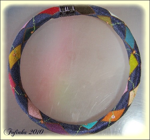 Diese freie Anleitung ist fĂŒr eine gehĂ€kelte Schlauchkette (LĂ€nge: 53cm und StĂ€rke: 15mm). Es werden 15/0er Rocailles in 27 verschiedenen Farben verarbeitet.