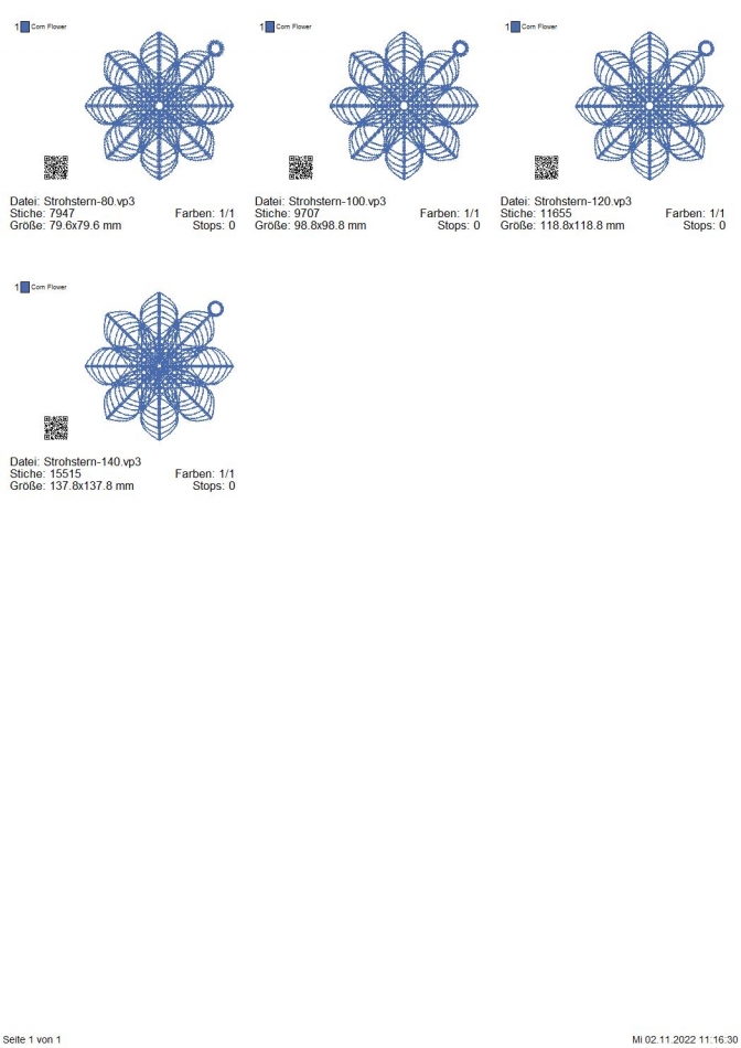 Ich stelle die Dateien im dst, exp, hus, jef, pes, vip, vp3 und xxx Format zur VerfĂŒgung.
