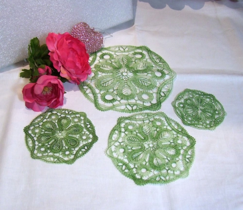 - Ich empfehle fĂŒr FSL (free standing lace - freistehendes Lace) 3 Lagen auswaschbares Vlies zu verwenden.