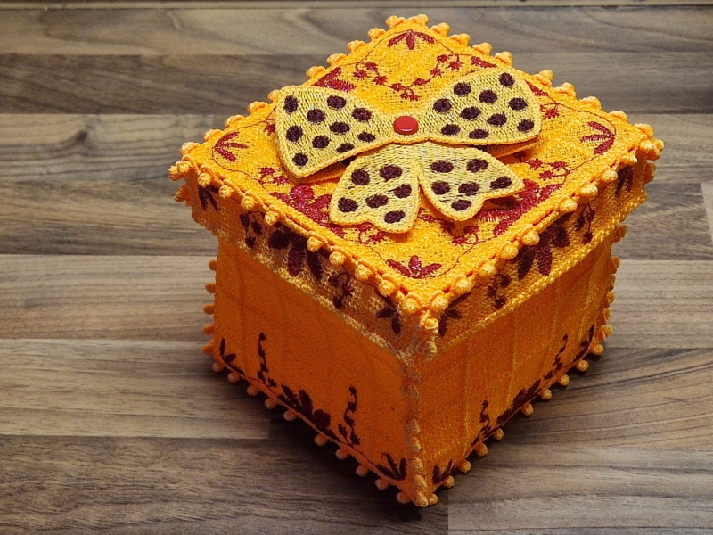 Ich empfehle eine 90er Topstitch-Nadel und mit mäßigem Tempo zu sticken. Es ist auch von Vorteil NICHT mehrere Elemente in einem großen Rahmen zu sticken, sondern immer einzeln in den kleinstmöglichen Rahmen.