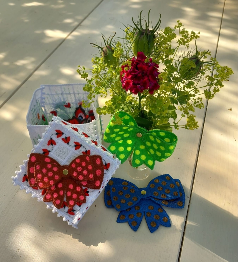 Nach dem Sticken spülst du das Vlies unter fließendem lauwarmem Wasser aus und legst deine Teile flach zum Trocknen hin. Auf keinen Fall solltest du im nassen Zustand deinen Stickteile dehnen oder gar zerren. Gerne kannst du, wenn sie trocken sind, unter einem Geschirrtuch mit Dampf bügeln.