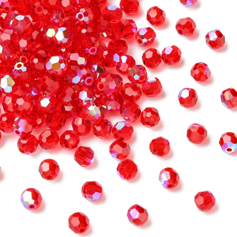 Preciosa® Kristallperlen, tschechischer Kristall, 451 19 602 rund, 90070 200 hell siam ab, 4 mm, Bohrung: 1 mm